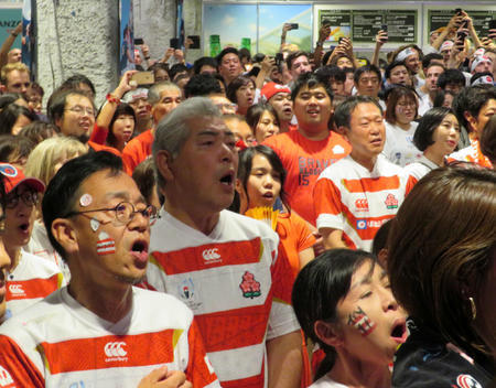 南アフリカ戦のパブリックビューイング(PV)が20日、東京・有楽町で行われ、約1万5000人が訪れた。