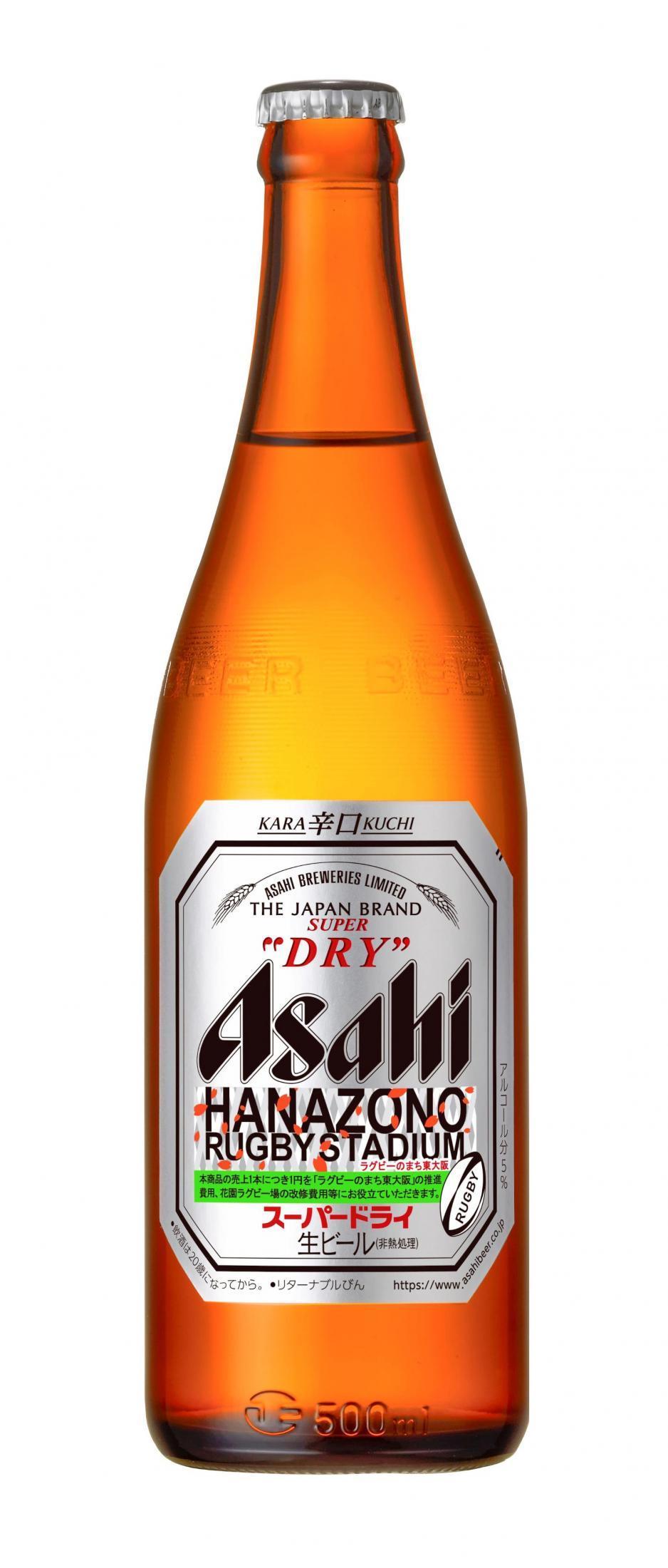 20日に開幕するラグビーワールドカップ(W杯)日本大会の会場の一つで「聖地」と称される花園ラグビー場(大阪府東大阪市)を応援しようと、アサヒビールが「ラグビーのまち東大阪ラベル」の瓶ビールを売り出している。数量限定で、売り上げ1本につき1円が同市に寄付される。
