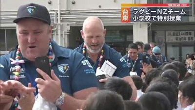 日本代表の快進撃でラグビーワールドカップが盛り上がる中、東京・台東区の小学校にラグビーのニュージランドのクラブチームが訪れ、特別授業を行いました。