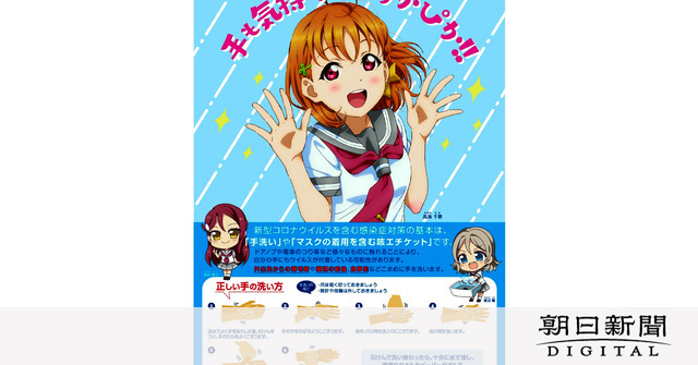 静岡県沼津市が舞台の人気アニメ「ラブライブ!サンシャイン!!」のキャラクターが、新型コロナウイルス感染症予防を目的とした手洗いを呼びかけている。厚生労働省の企画で、ラブライブを制作するサンライズ(東京都)と協力し、12日に啓発ポスターを公開した。