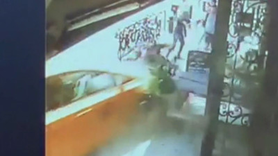 オープンテラスのレストランに突っ込んできたのは、黄色いタクシー。