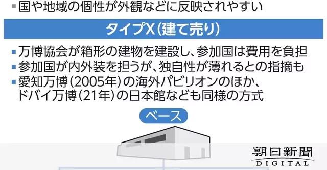 2025年大阪・関西万博の海外パビリオンの建設手続きが進んでいない問題で、これまでに1カ国が自前で建てる「タイプA」のパビリオン建設を断念したことがわかった。日本国際博覧会協会(万博協会)が代わりに建てて引き渡す「タイプX」に変更する。ほか10カ国程度が「X」に関心を示しているという。