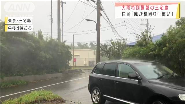 気象庁は東京の伊豆諸島の三宅島と御蔵島に大雨特別警報を出しました。気象庁は最大級の警戒を呼び掛けています。 三宅島に住む人:「雨はかなり強く降っているのと、風が横殴りなので肌に感じるくらい痛い感じ。波がかぶるような道路は通行止めになっている」「(Q.大雨特別警報が出た時の気持ちは?)これから、より強くなってくるとちょっと怖いところもある」