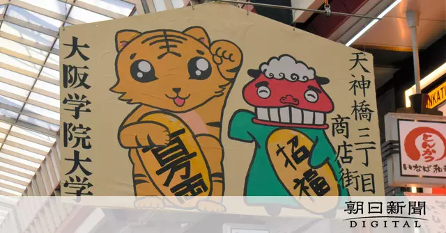 日本一長いとされる天神橋筋商店街(大阪市北区)に、来年の干支(えと)「寅(とら)」を描いた巨大な絵馬がお目見えした。天井からアーケードを彩っている。