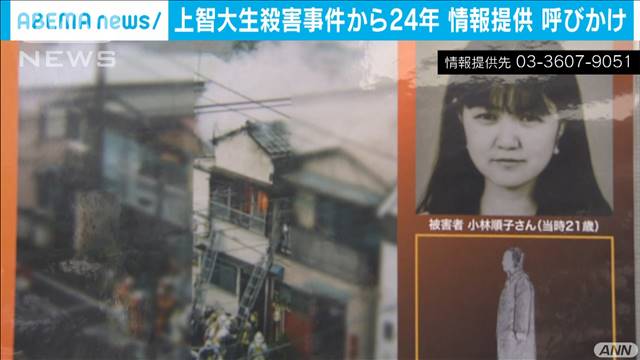 1996年9月9日、上智大学の学生だった順子さんが刃物で刺されて殺害され、さらに自宅が放火されました。今年は新型コロナウイルスの影響で毎年行われている事件現場での献花式や情報提供のビラ配りが中止となりましたが、遺族らが現場近くの京成電鉄柴又駅で利用客に情報提供を呼び掛けました。解決につながる情報提供者には最大で800万円の懸賞金が支払われます。