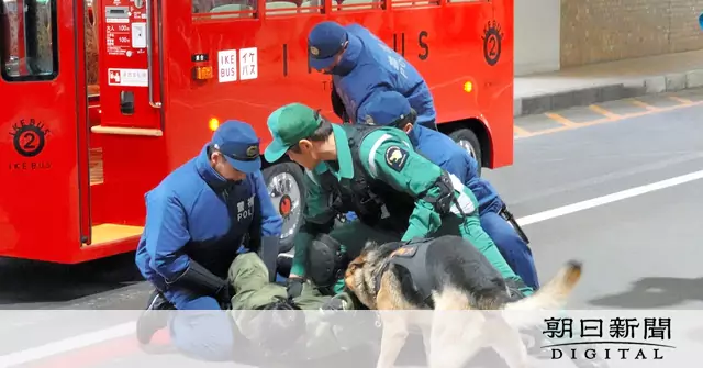 9日には、イケバスの乗務員の通報で駆けつけた警察官や警備犬が、刃物を持った不審者を取り押さえる訓練もあった。視察した高山祐輔・警視庁警備1課長は「日常生活の中で何か違和感を覚えることがあれば、迷わずに110番通報を」と呼びかけた。(吉沢英将)