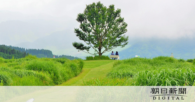 熊本県南阿蘇村にある葉祥明(ようしょうめい)阿蘇美術館は、絵本作家・葉祥明さん(73)の原画などを展示している。館内から、「絵本の小道入口」と書かれた白い扉を開けると、目の前に6・6万平方メートルの草原が広がる。ぽつんと立つこぶしの木に向かって丘を上り、ベンチに腰掛けて雄大な自然を望むと、作品の中に入ったような気分になる。