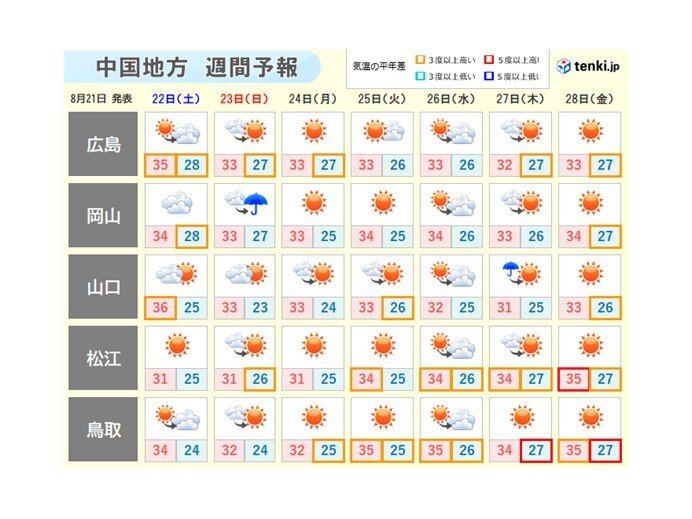 土曜日・日曜日ともに、午後を中心ににわか雨のところがある見込みです。