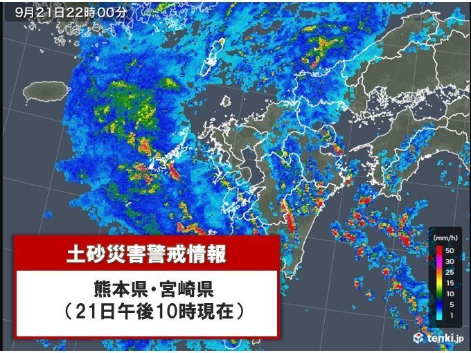熊本県・宮崎県に土砂災害警戒情報 警戒レベル4に相当