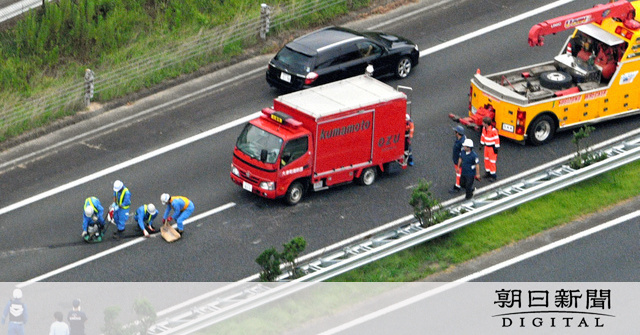 県警高速隊によると、現場は2車線で、宇城氷川スマートインターチェンジ付近の直線部分。同隊は右後輪のパンクが原因とみて調べる。運転していた20代男性が首に、同乗の20代と30代の女性2人が左肩にそれぞれ痛みを訴えて病院に搬送されたが、軽傷とみられるという。