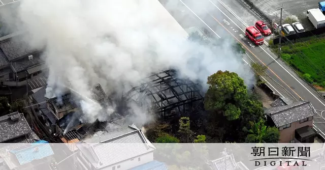 12日午後1時半ごろ、京都府八幡市岩田高木の明尊寺(みょうそんじ)付近から「煙と炎が出ている」と、近くの人から119番通報があった。八幡市消防本部によると、木造平屋の本堂と庫裏が全焼し、境内にある東弘道(ひがしひろみち)住職(65)の住宅も焼けた。けが人はいなかった。周囲の民家に被害はなかった。警察と消防が出火原因を調べている。