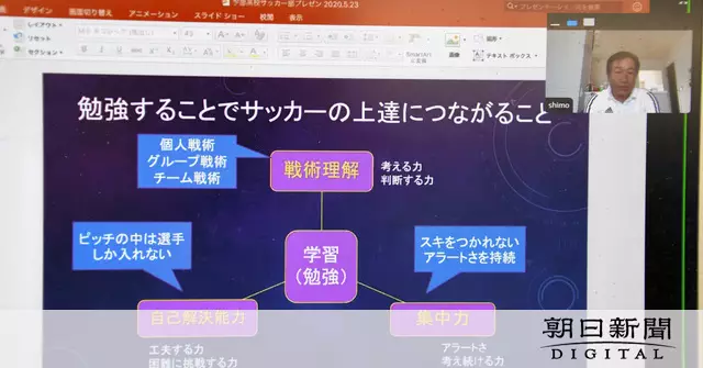 新型コロナウイルスの影響で、部活動の長期間休止に追い込まれた子どもたち。そんな中、サッカーJ2レノファ山口の監督や選手らが、インターネットを通じてアドバイスする「オンライン・ミーティング」が、クラブ発案で催された。テーマは「人生で必要なことはサッカーから学べる」――。