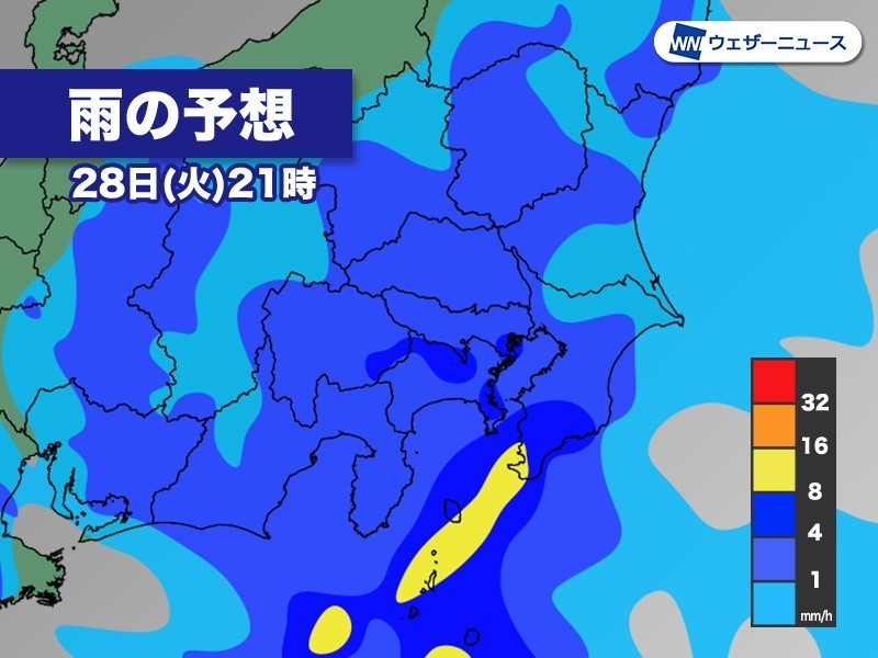 特に千葉県や茨城県、伊豆諸島では今夜から明日29日(水)朝にかけて雷を伴った激しい雨が降り、1月としては記録的な大雨となるおそれがあります。