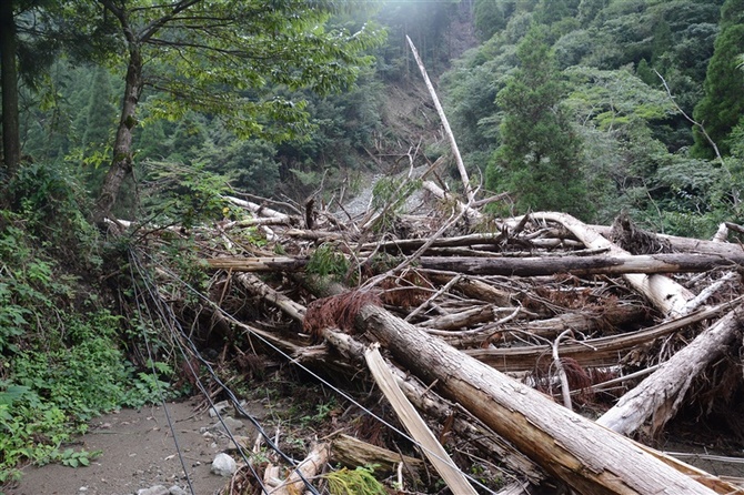 民家などからの搬出がほぼ終わった災害ごみについて、市は10月末までの処理を目標にしている。市内2カ所の仮置場で選別後、2次仮置場に持ち込まれ、近くの市清掃センターで焼却している。センターに直接持ち込んだ分も含め、これまで可燃ごみ1409トンが搬入されたが、焼却されたのは約26%の369トン(8月24日現在)にすぎない。 処理できないタイヤ800本、車のバッテリー30個、消火器などは専門業者の受け入れ待ちだ。 土砂崩れや崩落が相次いだ市内の道路は53カ所で全面通行止め(8月31日時点)が続いている。中でも中津江村内は深刻で、市内中心部につながる国道442号は10月末に通行できる見通しになったが、村内を巡回する道路などは依然約20カ所が通れないまま。