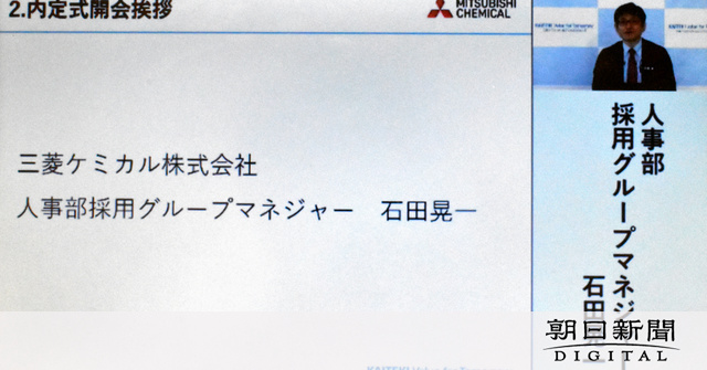内定式は、出席するものから見るものへ――。化学大手の三菱ケミカルは1日、来春の入社予定者の内定式を初めて、約1時間の映像ストリーミング(配信)にして開いた。内定式のために来社する必要をなくし、学生が学業に専念しやすくする狙いがある。