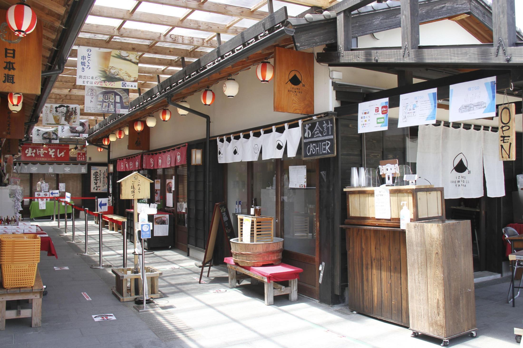 土産物やご当地グルメなどを扱う9店舗が並ぶご縁横丁は、4月13日から全店舗が休業。しかし、県が緊急事態宣言の対象から外れた3日後の5月17日、「大社前のにぎわいを取り戻そう」と無人市を始めた。