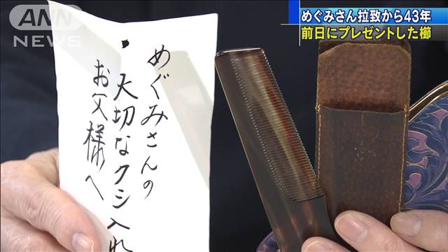 めぐみさんは中学1年の時、滋さんの誕生日にお小遣いでくしをプレゼントしました。次の日、めぐみさんは拉致されました。6月に亡くなった滋さんは、このくしをずっと大切に使っていたということです。早紀江さんは「大事な子どもが連れ去られて43年経っても救えない。どこの国の人が見てもおかしい」と話し、拉致被害者の一刻も早い帰国を政府に訴えました。めぐみさんは先月、56歳の誕生日を迎えました。