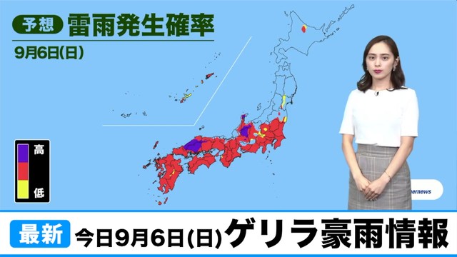 台風10号がもたらす暖かく湿った空気の影響で、西日本や東日本の太平洋側では断続的に雨雲が流れ込みます。 発達した雨雲が流れ込んで、一時的に激しい雷雨になるおそれもあります。日差しが届いていても油断せず、折りたたみ傘を持ってお出かけください。
