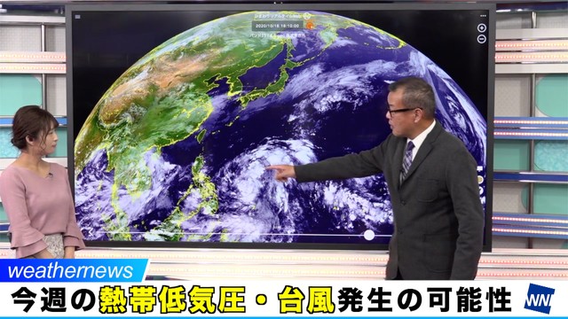 日本のはるか南海上に広がっている積乱雲群が少しずつまとまり始めました。明日19日(月)の朝までには熱帯低気圧になる見込みです。 その後もやや発達しながら西に進み、台風となる可能性もあります。太平洋高気圧が西に勢力を広げているため北上することはなく、今の所はフィリピン付近を通過して、南シナ海に進むと見ています。直接の影響はないものの、週の中頃は周辺の湿った空気が沖縄方面に流れ込んできますので、念のため今後の動向に注意が必要です。