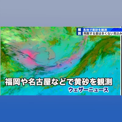 これは大陸で巻き上げられた黄砂が上空の西風に載って東に拡散し、西日本の太平洋側や東海を中心に飛散が観測されているためです。