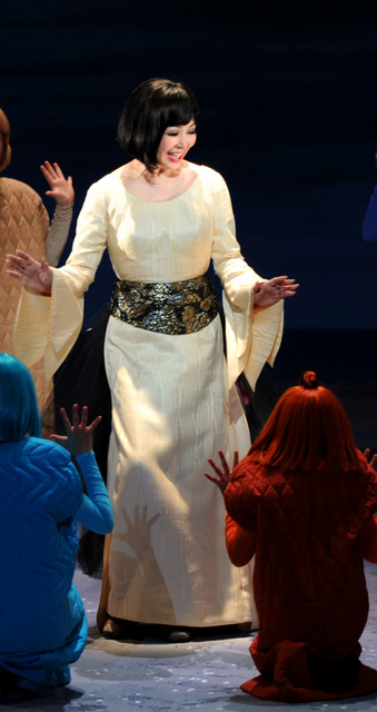 子どものころはピアノ一筋。中学生で歌に目覚め、声楽の道へと踏み出した。国立音楽大を卒業後、狭き門のオペラ研修所へ。そこで所長だった作曲家の團伊玖磨(だんいくま)に出会う。「歴史上の人物だと思っていたので、『生きているんだ』って驚いたんです」。そう語る笑顔のチャーミングだったこと。