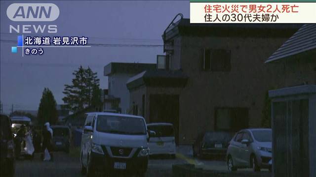 北海道岩見沢市の住宅で火事があり、住人の30代の夫婦とみられる男女2人の遺体が見つかりました。 15日午後4時すぎ、岩見沢市の住宅で「煙が出ている」と警察に通報がありました。火は約1時間後に消し止められましたが、1階の焼け跡から男女2人の遺体が発見されました。警察によりますと、この住宅には家族4人が住んでいて、小学生の息子2人は親戚の家にいて無事でしたが、30代の夫婦と連絡が取れていないということです。警察は、身元の確認を進めるとともに出火原因を調べています。