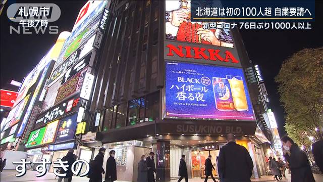 冬が近付き、新型コロナウイルスが猛威を振るい始めています。全国で5日、新たに感染が確認された人は、76日ぶりに1000人を超えました。東京では269人の感染者が新たに確認され、2日ぶりの200人台です。 北海道では5日、新たに119人と、初めて100人を超えました。先月下旬以降は緊急事態宣言が出ていた4月の水準を上回る数の感染者が連日のように確認されています。 特に目立つのは繁華街『すすきの』がある札幌市です。