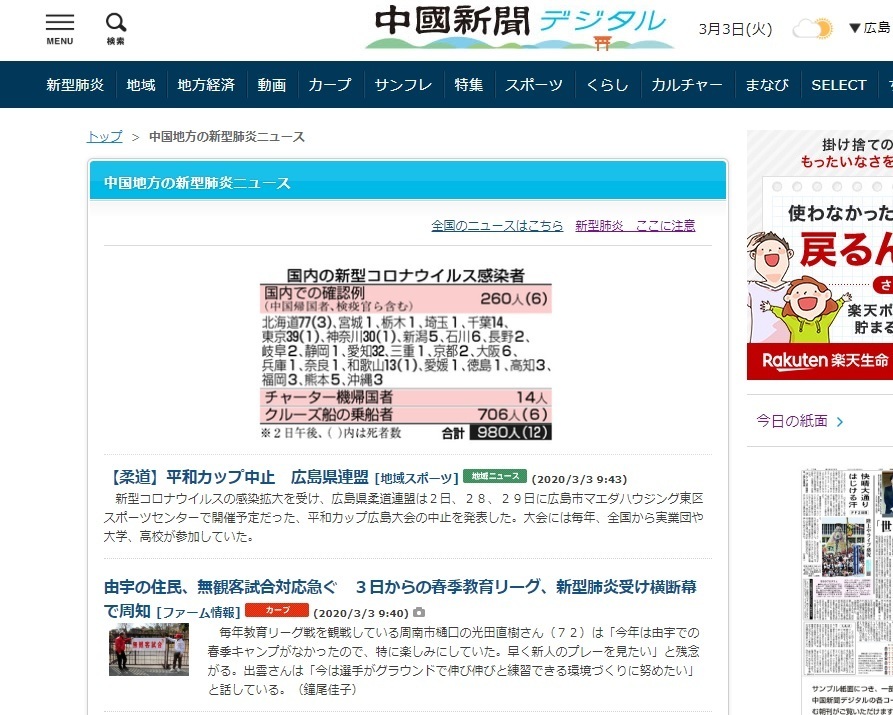 男性は2月15日、37・0度の発熱で医療機関A(安佐南区)を初めて受診。その際、医師は既に「肺炎疑い」と見立てていた。薬を処方されたが男性は回復せず、22、28日に訪れた医療機関B(中区)で経過観察に。3月3日には医療機関C(安佐南区)がインフルエンザの検査をし、陰性だった。