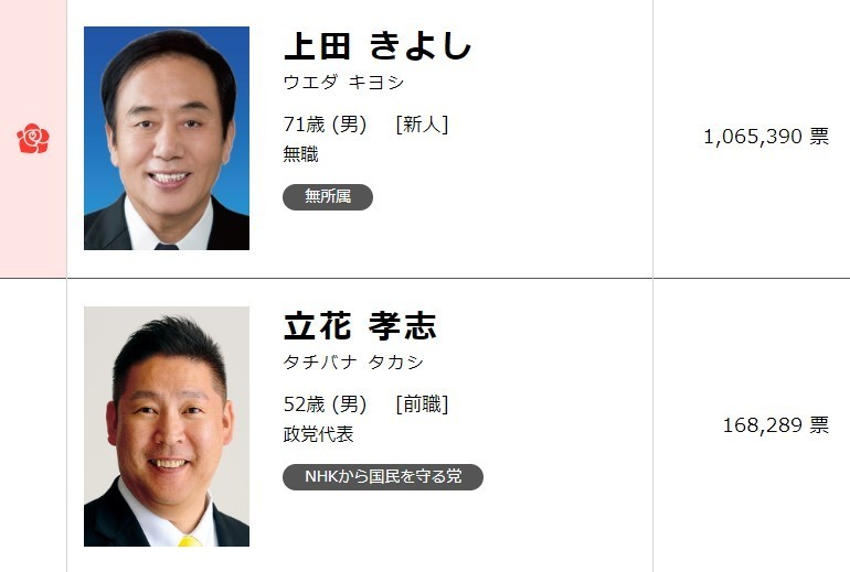 10月27日に投開票が行われた参議院埼玉県選出議員補欠選挙(以下、参院埼玉補選)で前埼玉県知事の上田清司氏(71)が前職でNHKから国民を守る党代表の立花孝志氏(52)を破り当選しました。