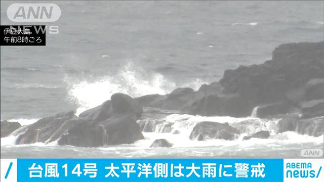 台風14号は現在、紀伊半島の南の海上を進んでいます。太平洋側を中心に大雨や暴風に警戒が必要です。 台風14号は10日午後1時には和歌山県の潮岬の南の海上にあって、東北東へ進んでいるものと推定されます。中心の気圧は985ヘクトパスカル、中心付近の最大風速は30メートルと推定されます。台風は暴風域を伴ったまま東寄りに進み、11日の明け方から朝にかけて伊豆諸島南部に最も近付くでしょう。その後は勢力を弱めながら次第に進路を南寄りに変え、12日の朝には熱帯低気圧に変わる見込みです。台風は陸地からやや離れた所を進んでいるものの、本州の南に停滞する秋雨前線の活動が活発になっていて、この後は東日本の太平洋側で激しい雨の降る所があり、伊豆諸島では11日にかけて非常に激しい雨が降る恐れがあります。11日正午までに予想される雨の量は伊豆諸島の多い所で300ミリとなっています。土砂災害に厳重に警戒し、低い土地の浸水、河川の増水や氾濫に警戒をして下さい。