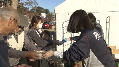 今シーズン最低気温となる5.4度を観測した丸森町には、自衛隊による「風呂」が設置された。
