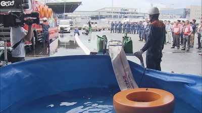 きょうの訓練では、新たに導入された浸水を防ぐシートや、大型のポンプ車の使い方などを確認した。