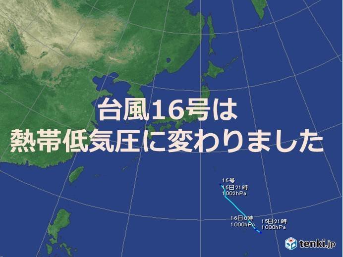 台風16号は熱帯低気圧に
