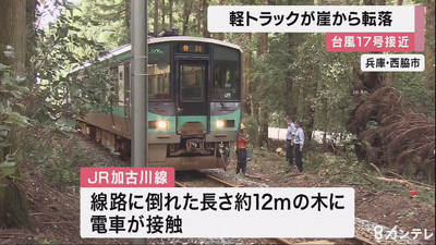 兵庫県西脇市のJR加古川線では、午前7時20分ごろ、線路に倒れた長さ約12mの木に電車が接触しました。