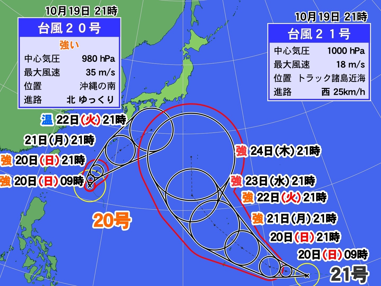 19日午後9時、トラック諸島近海で台風21号が発生した。