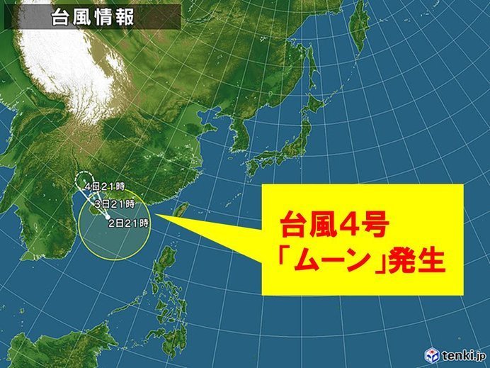 きょう7月2日21時、南シナ海で、台風4号「ムーン」が発生しました。