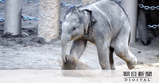 飼育員らがゾウと同じエリアに入らないことで、ゾウへのストレスを軽減し、飼育員らの安全を確保する「準間接飼育」では、アジアゾウの出産は初めての事例だった。(古畑航希)
