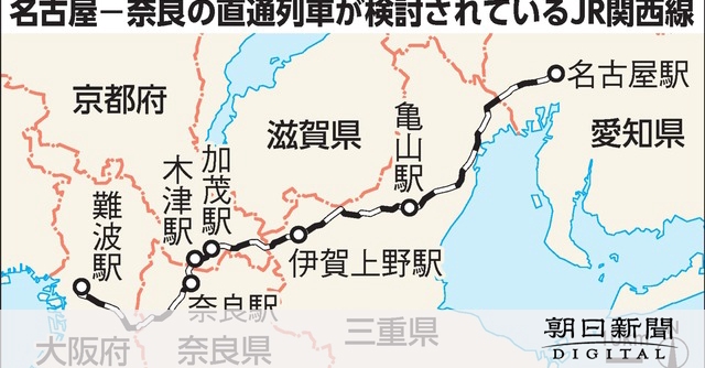三重県と伊賀、亀山両市、JR西日本は、JR関西線経由で奈良と名古屋を結ぶ直通列車を来年度、18年ぶりに復活させる調整に入った。利用促進に向けた実証運行で、県も費用を負担。最低でも「2日ぐらい」(一見勝之知事)の期間を想定している。亀山―名古屋間を管轄するJR東海とも協議を進める。