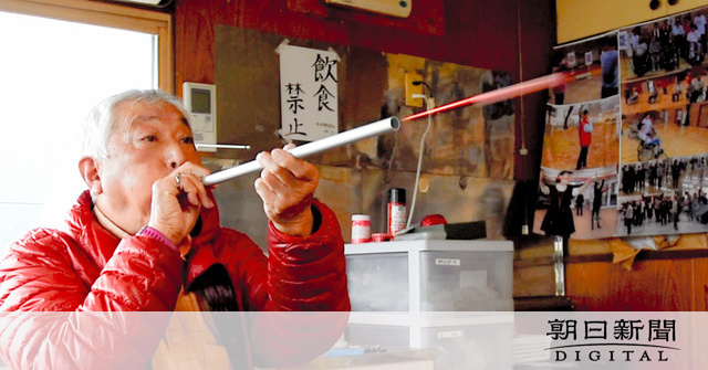 「マグネット吹き矢」は先端に磁石がついた矢をアルミのパイプから吹き、4メートル先の的を狙うスポーツ。高齢者も気軽にできる運動として、各地の介護施設で導入が進んでいる。