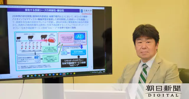 黒毛和牛の子牛の血液から将来の脂肪交雑(サシ)の状態などの肉質をAI(人工知能)で予測する――。近畿大学生物理工学部の松本和也教授(畜産学)らの研究グループがそんな技術を開発した。子牛の段階で将来の予測ができることで、肉質の向上、安定生産につなげることができるという。この技術を「AIビーフ」と名付け、大学発スタートアップ企業としてサービス開始を目指している。