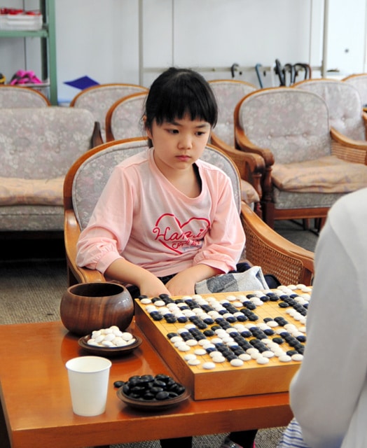 囲碁の史上最年少プロ棋士、仲邑菫(なかむらすみれ)初段(10)が23日、大阪市中央区の関西棋院であった第14回広島アルミ杯・若鯉(わかごい)戦の予選1回戦で羽根彩夏(はねあやか)初段(17)に時間切れ勝ちした。仲邑初段は公式戦の連勝を4に伸ばした。午後1時半からは予選準決勝が始まっており、勝てば夕方に本戦出場をかけた決勝もある。