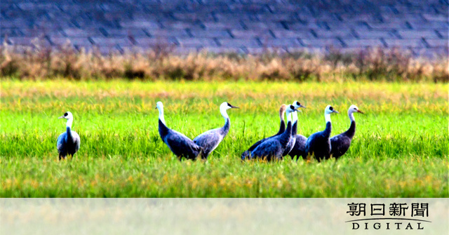 国内最大のツルの越冬地、鹿児島県出水市の出水平野に18日、今季最初のツルがやって来た。県ツル保護会によると、午前9時までに東干拓などで17羽を確認した。昨年より1日遅い渡来。昨年度は1万7315羽が確認され、24季連続の「万羽ヅル」だった。(具志堅直)