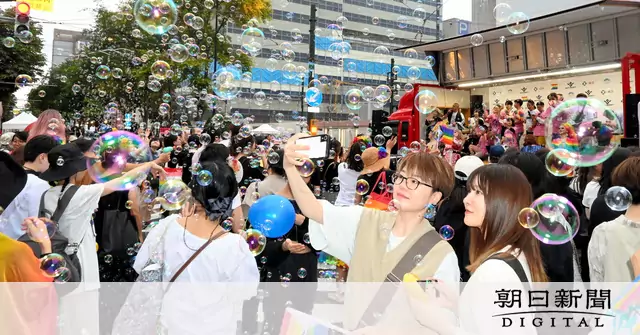 終了後、参加者らは雨上がりの空にシャボン玉を飛ばし、多様な生き方を認める社会の実現を願った。(上保晃平、古畑航希)