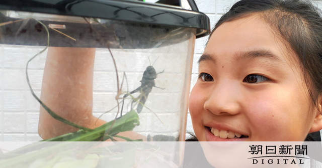 虫かごに入れ、母の享子さんと3人でかわるがわる世話しているが、バッタは窓の外ばかり見ている。