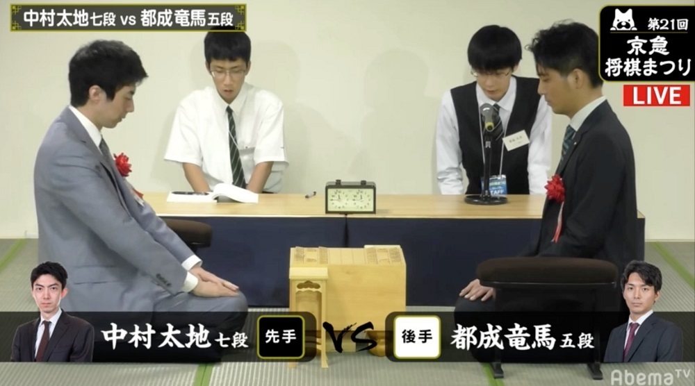 京急将棋まつりが8月18日に行われ、中村太地七段(31)と都成竜馬五段(29)のイケメン棋士対決が繰り広げられている。