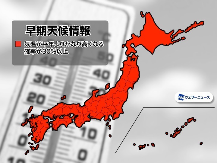 例年ならこれから最も寒い時期に突入するタイミングですが、暖冬傾向に拍車がかかりそうです。気象庁は北海道から沖縄にかけての広い範囲に「高温に関する早期天候情報」を発表しました。