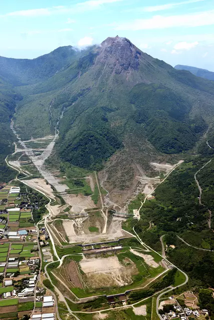 この春、国の砂防工事がすべて終わった。国土交通省は28年間で、水無(みずなし)川など三つの河川に堰堤や導流堤など95施設を建造した。総工費は約1950億円。