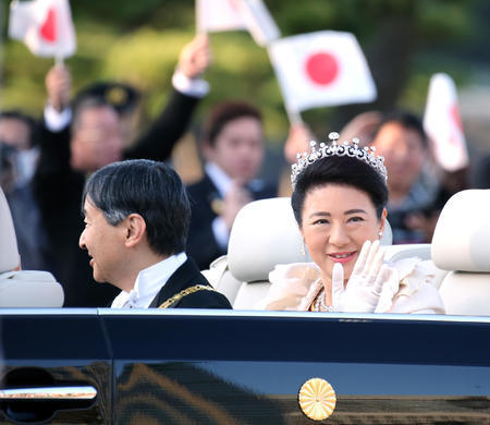 天皇陛下の即位を披露するパレード「祝賀御列(おんれつ)の儀」が10日、快晴の空のもと、皇居から赤坂御所までの約4・6キロ、約30分間行われた。天皇、皇后両陛下は、オープンカーから沿道の観衆に手を振り続けた。