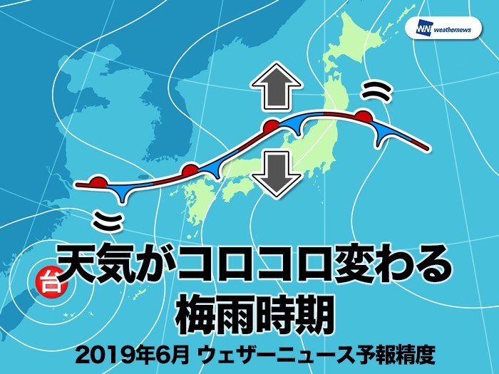 一般的に梅雨時期は少しの前線の上下によりコロコロと天気が変わってしまうという、特に予想が難しい季節とされていますが、2019年6月のウェザーニュースの予報精度は89.5%となりました。
