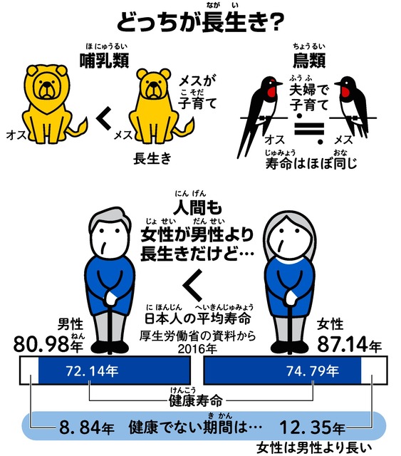 藤原先生 その通り。日本は世界で有数の長寿の国で、2016年の統計では男性の平均寿命は80.98年、女性は87.14年よ。